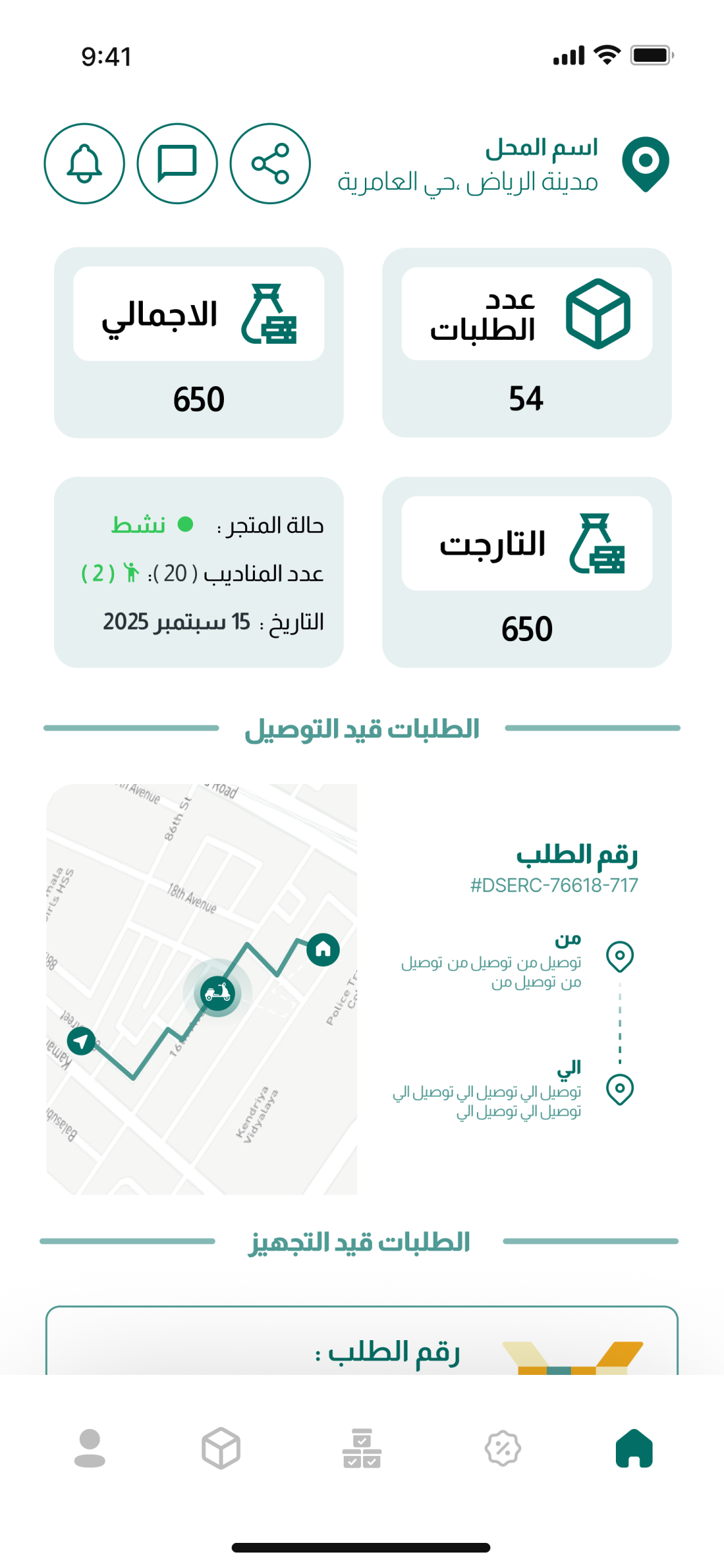 تابع مندوبك لحظياً على الخريطة، وتأكد من وصول الطلب للعميل بسرعة